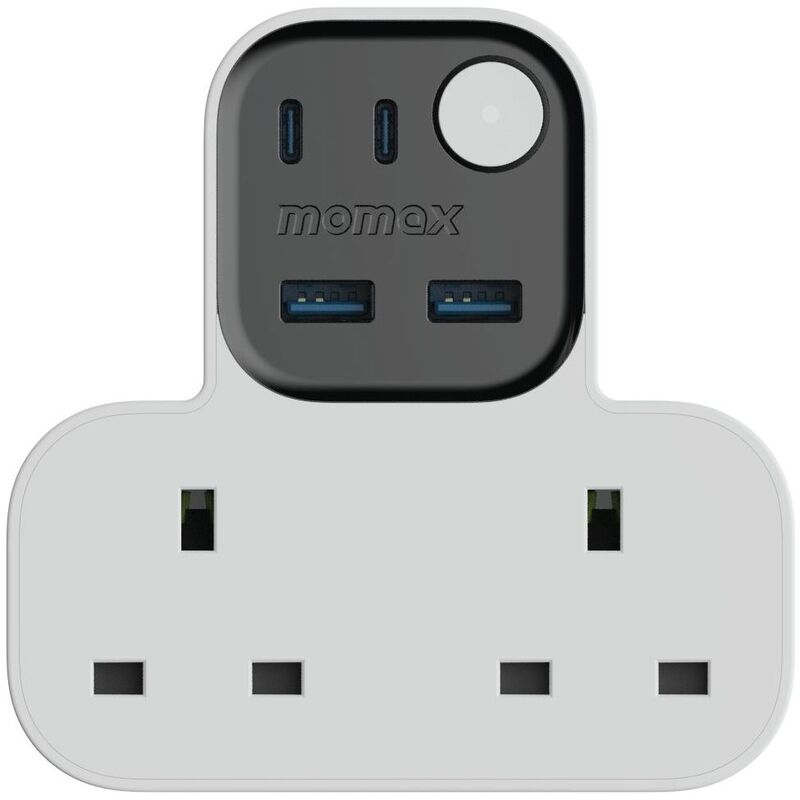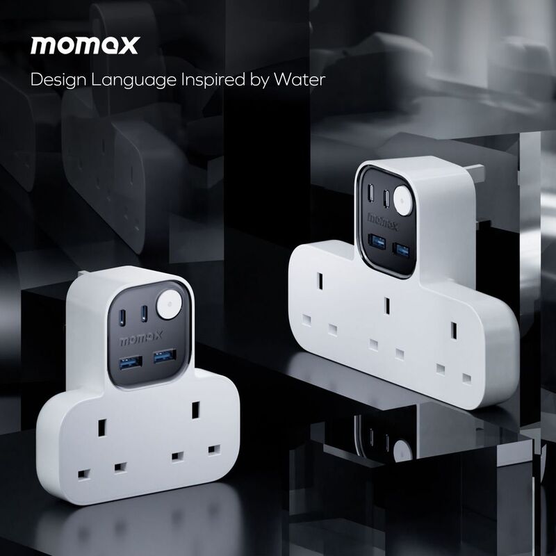 Momax 1-Charger Work Flow T-Shaped Extention 2 Socket With USB - White