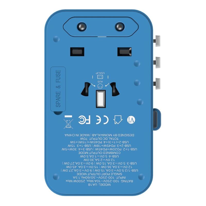- Experience Unparalleled FlexibilityIn a world where adaptability is key, the extendable and retractable USB-C cable of the UA18 provides the flexibility you need. Easily reach any device without the hassle of carrying multiple cables. It's time to simplify your travels while staying connected.Choose the 1-World 70W GaN Retractable Cable Travel Adaptor (UA18) – the essential companion for the modern traveler. Embrace Momax's commitment to privacy and sustainability, as we continue to lead the way with thoughtfully designed, quality products. Your convenience, comfort, and style are our top priorities.Make every journey a seamless connection.