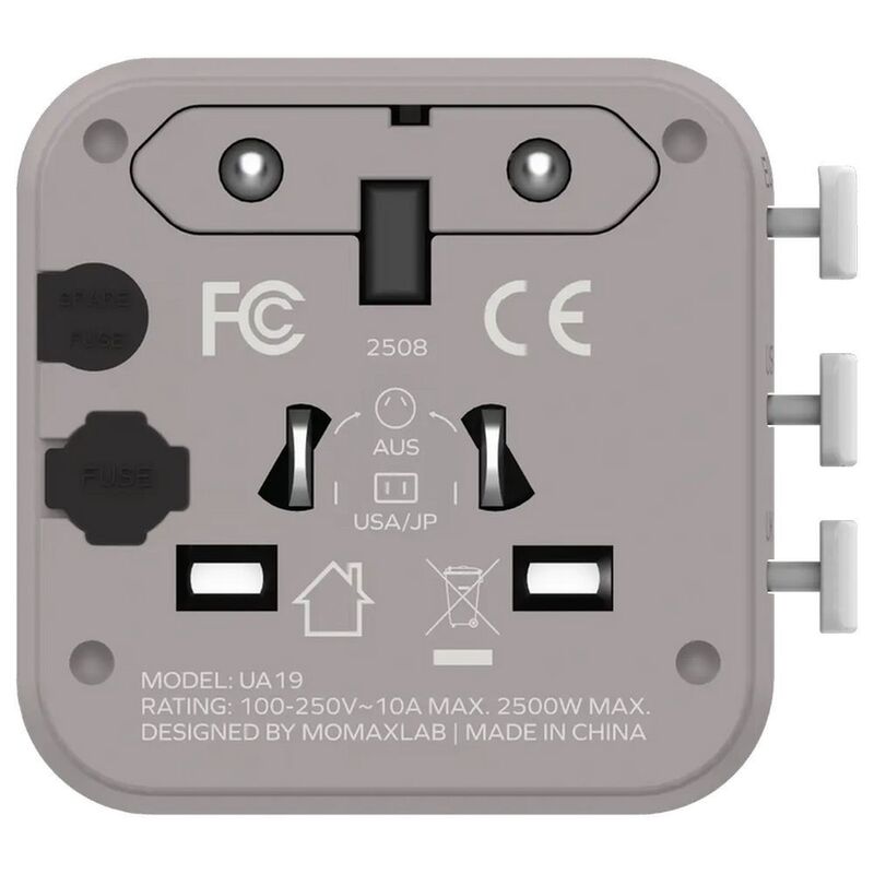 Momax 1-World Universal Travel Adaptor with Dual Ac - Grey