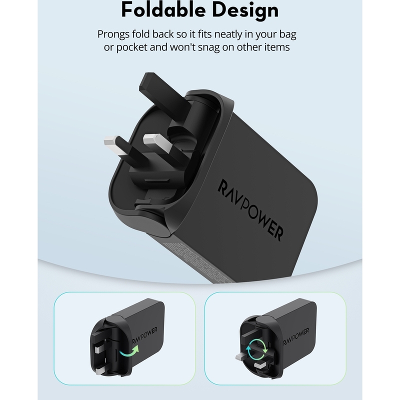RavPower PC1079 Foldable Plug Wall Charger GaN 65W 2C - Black