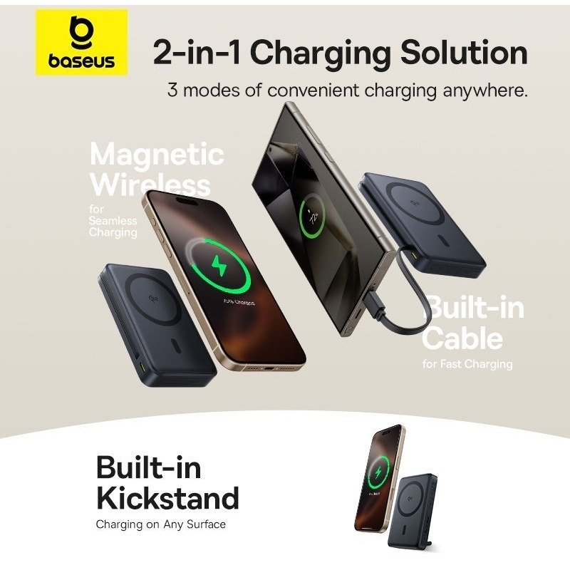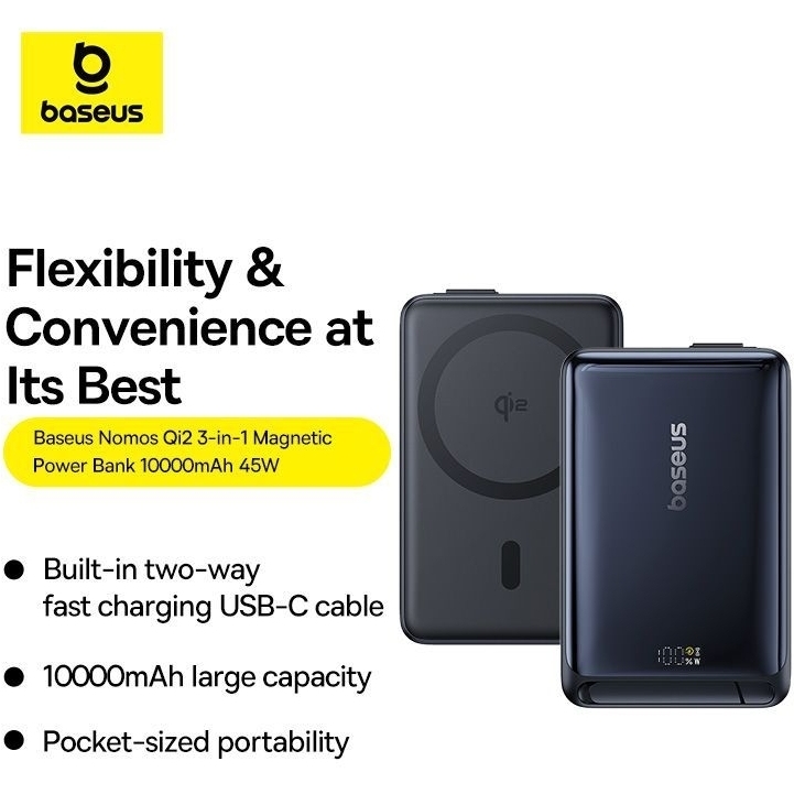 Baseus Nomos Qi2 Kickstand Magnetic Power Bank 10000mAh 45W - Cosmic Black
