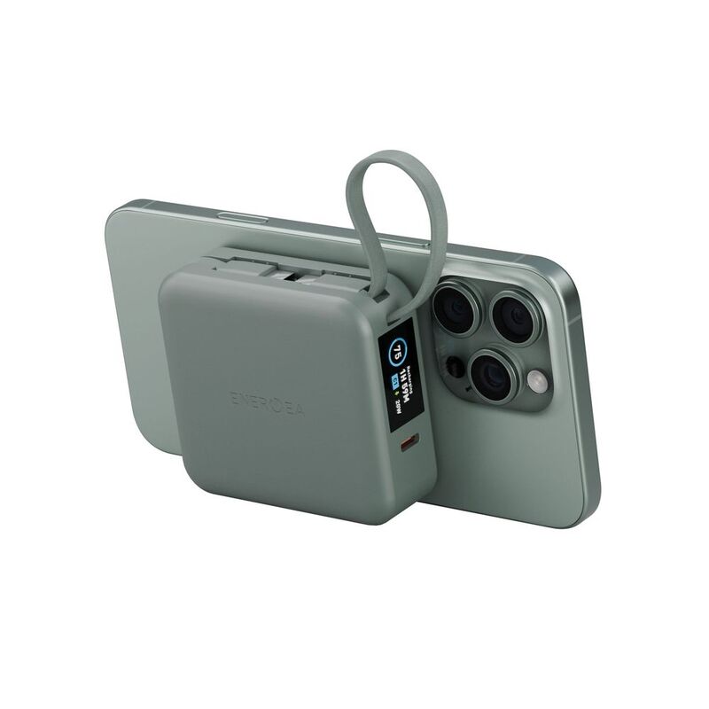 Energea Magpac Mini Plus 10000mAh Magsafe Compatible Power Bank With Built-In C Cables & Display - Sage