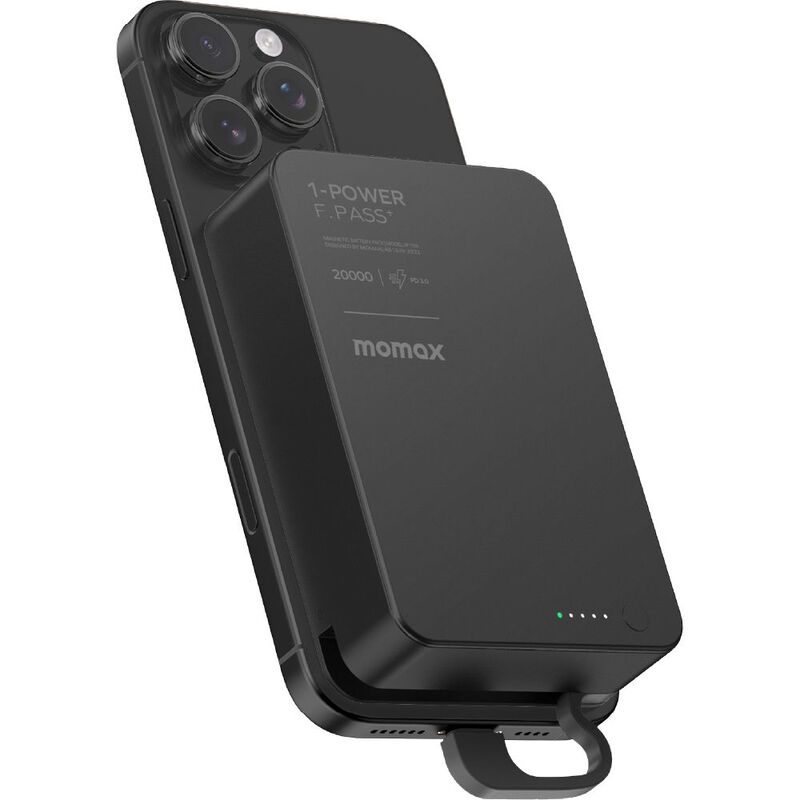 Momax 1-Power F.Pass+ 20000Mah Power Bank With Built-In Cable - Black