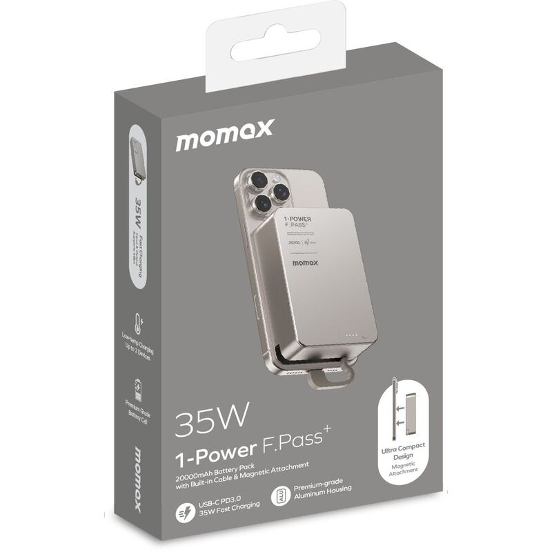 Momax 1-Power F.Pass+ 20000Mah Power Bank With Built-In Cable - Titanium