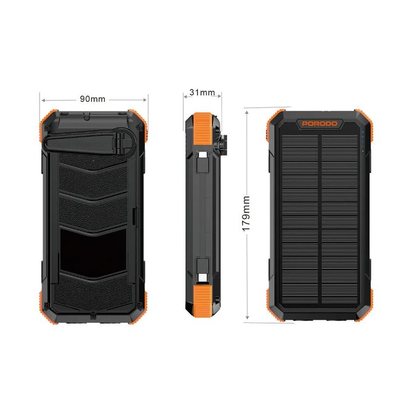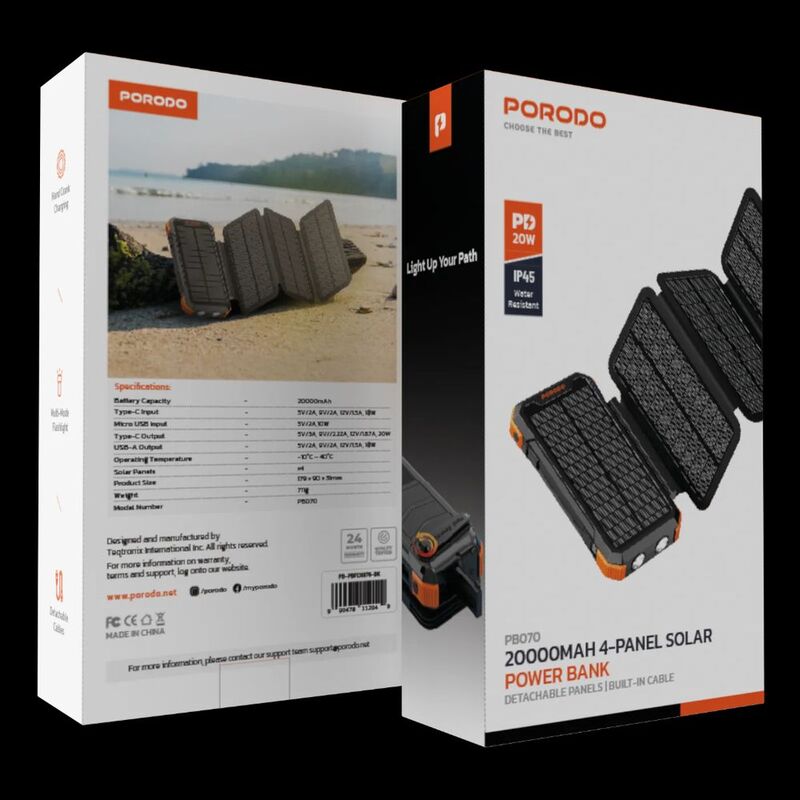 - Porodo Power Bank PB070 20000mAh 4-Panel Solar - Black