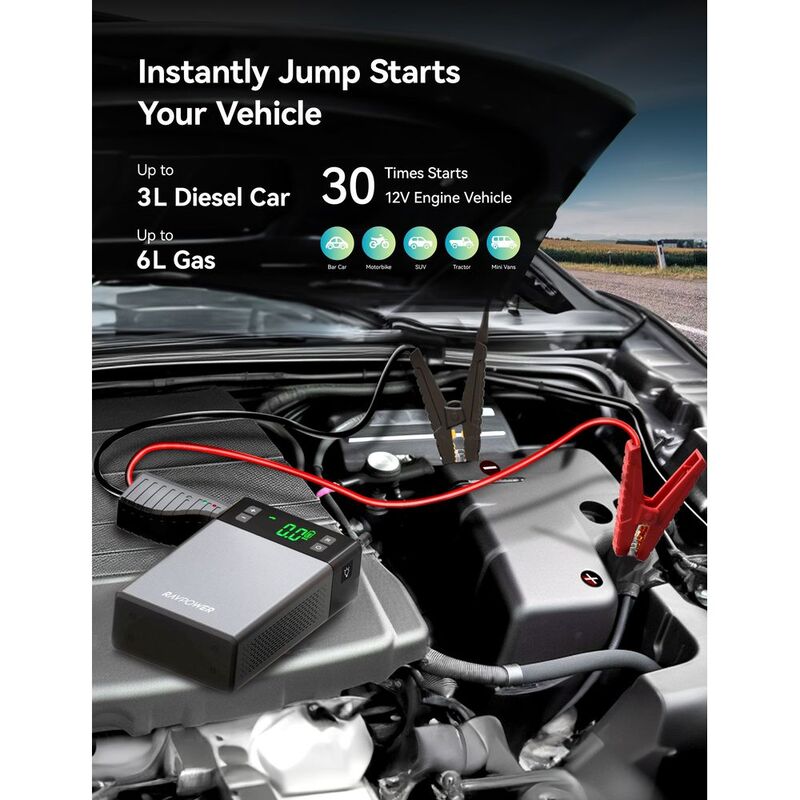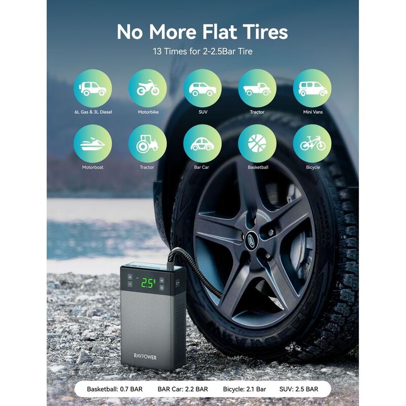 RAVpower RP-PB1213 Jump Starter with Air Compressor 12000mAh (44.4Wh) - Gray