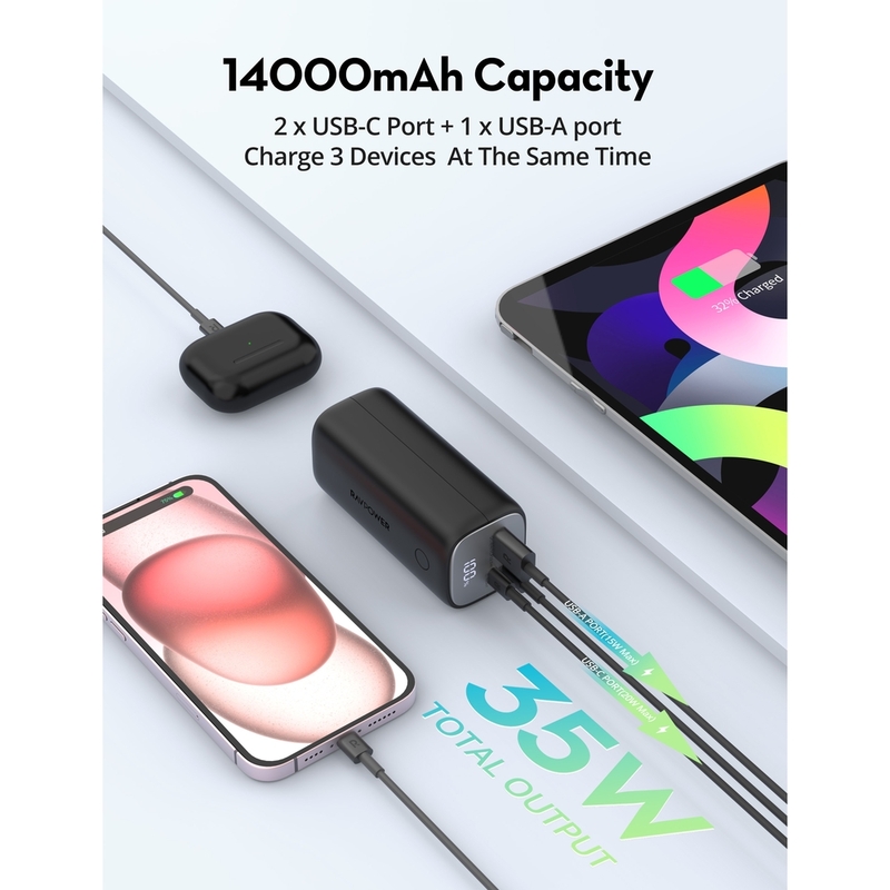RavPower RP-Pb208 Mini 14000mAh PD 30W 3-Port Portable Power Bank Black Global Version - Black