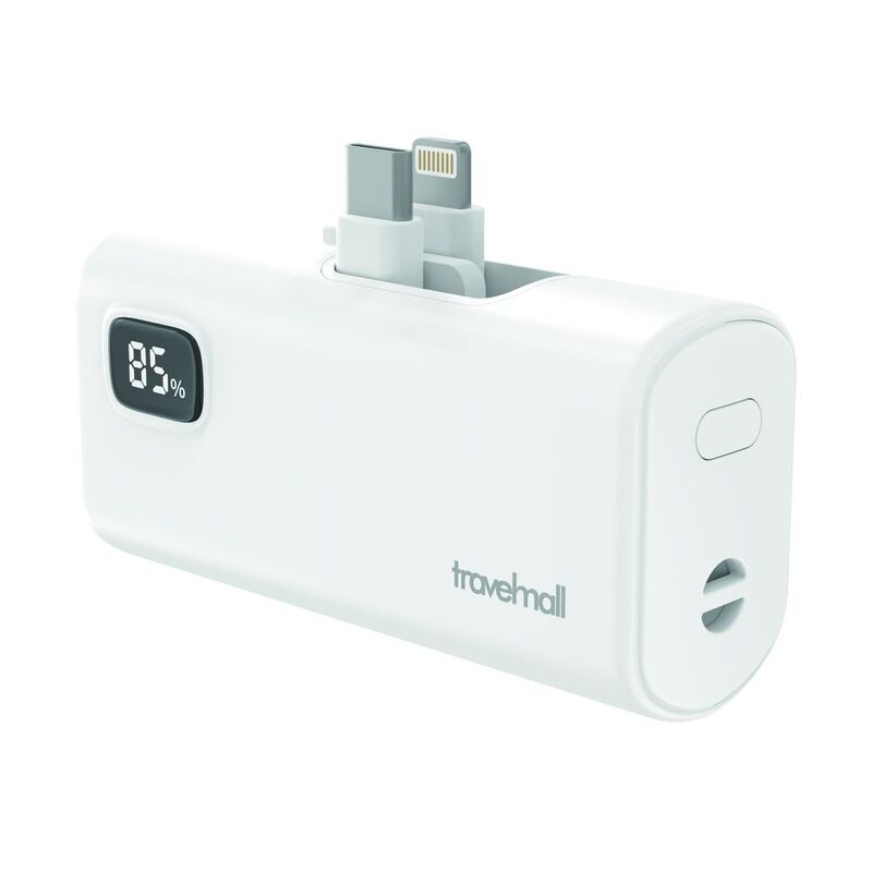 Travelmall 20W Rapid Charge 3-In-1 Digital Display 5000mAh Portable Charger With Foldable USB-C & Lightning Connectors