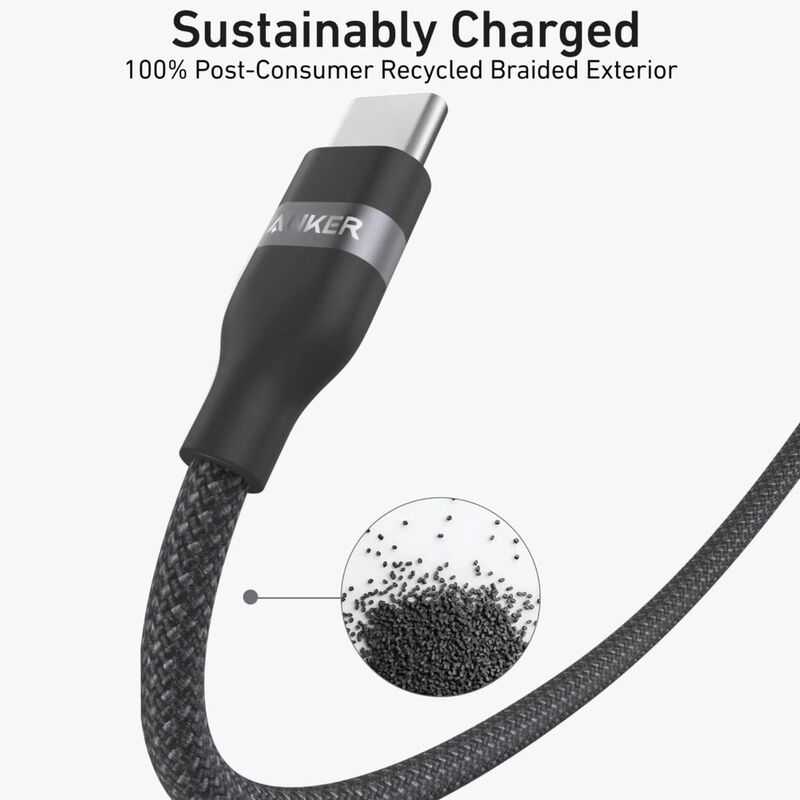 Anker USB-C To USB-C Cable (6 ft/ 240W/ Upcycled-Braided) Iteration 2 - Black