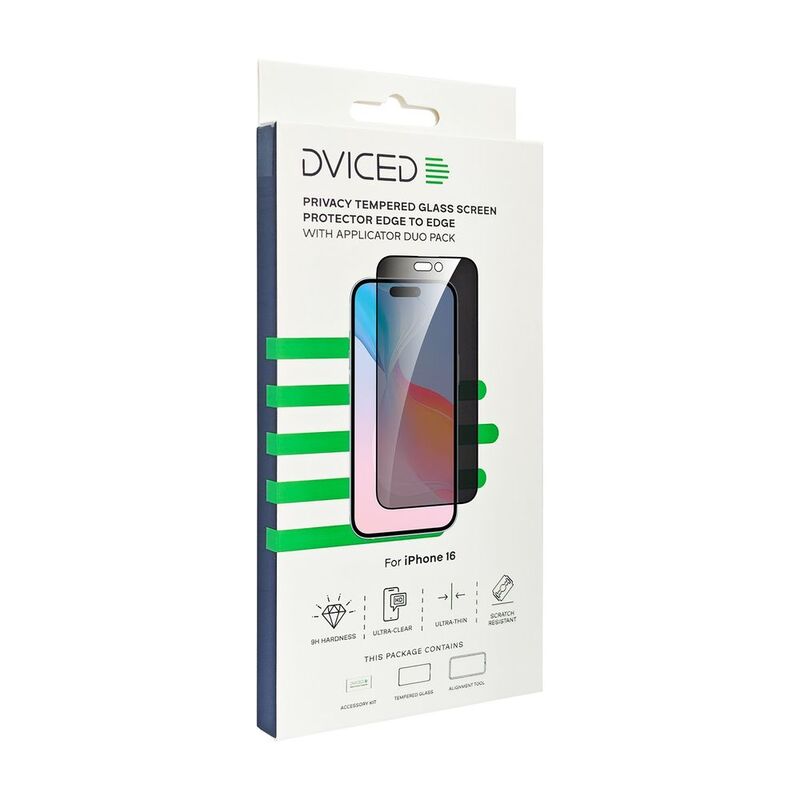 Dviced Privacy Tempered Glass Screen Protector Edge To Edge For iPhone 16 With Applicator Duo Pack