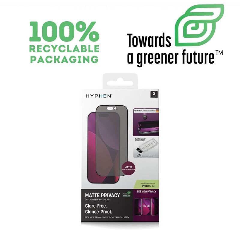 HYPHEN DEFENDR Matte Privacy Tempered Glass with Applicator - iPhone 17 - 6.3" with Self Applicator Kit