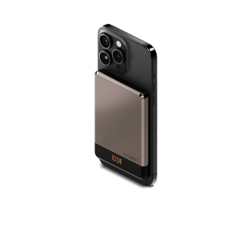 The MagSlim 5K is the ultimate choice for users seeking high-performance technology with a sleek, minimalist design and color options that seamlessly complement the phone's aesthetic. It features built-in magnets for precise alignment with iPhone devices using MagSafe Compatible Technology for magnetic wireless charging.