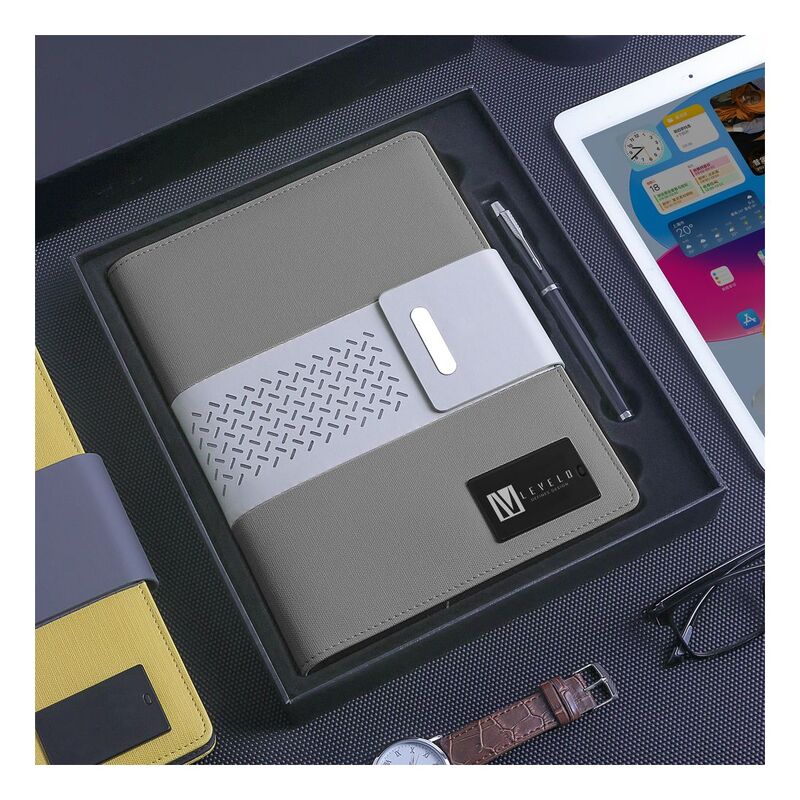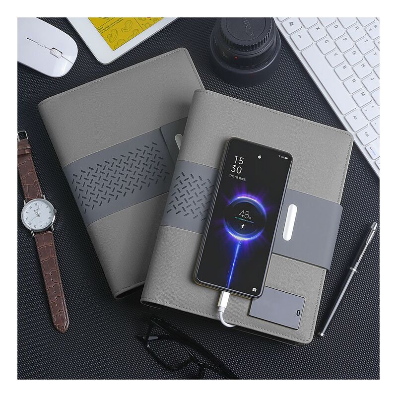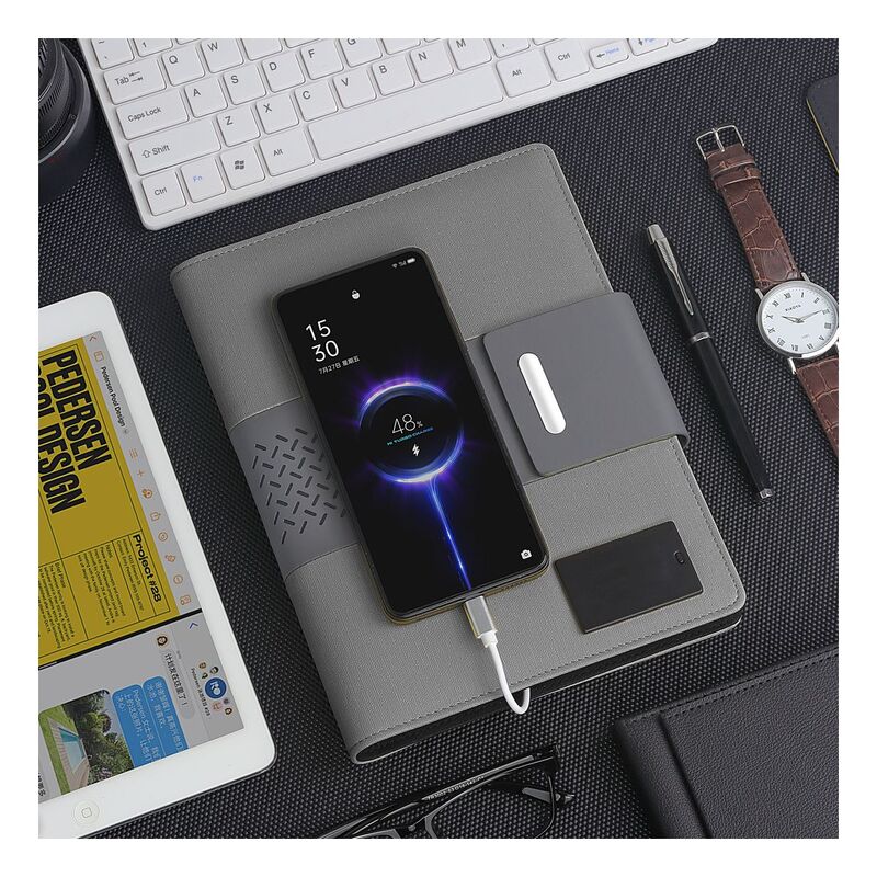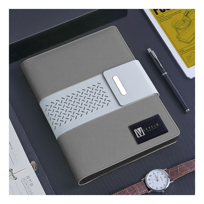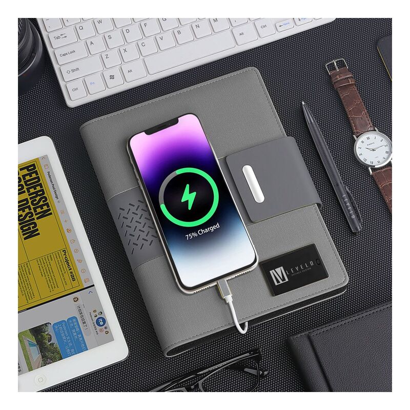 Levelo TechBook NoteBook Leather Cover With Built-In Power Bank 8000mAh - Grey