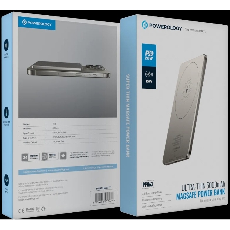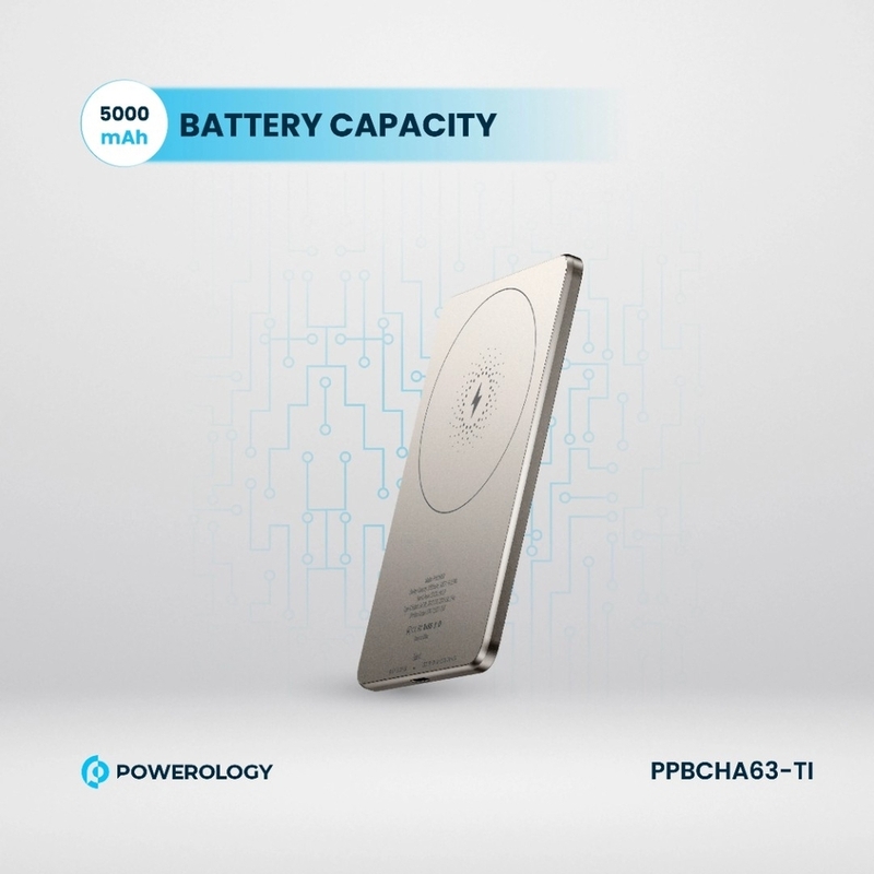 Powerology 5000mAh 15W Pd Type-C Magsafe Ultra Slim Power Bank - Titanium