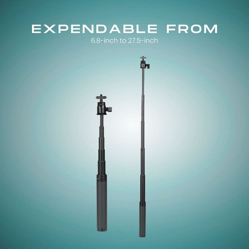 - Selfie Stick Length: Extendable from 6.8 inches (17.5 cm) to 27.5 inches (70 cm)