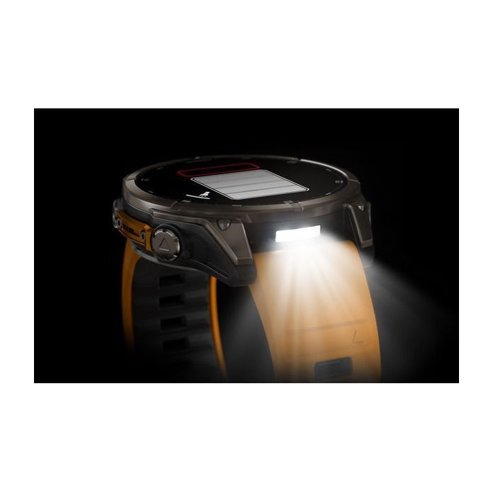 For serious athletes and adventurers who want to push beyond their limits, this premium multisport GPS smartwatch is built to perform — with advanced strength training features, dive capability, an internal speaker and mic for voice features, a built-in LED flashlight and more.