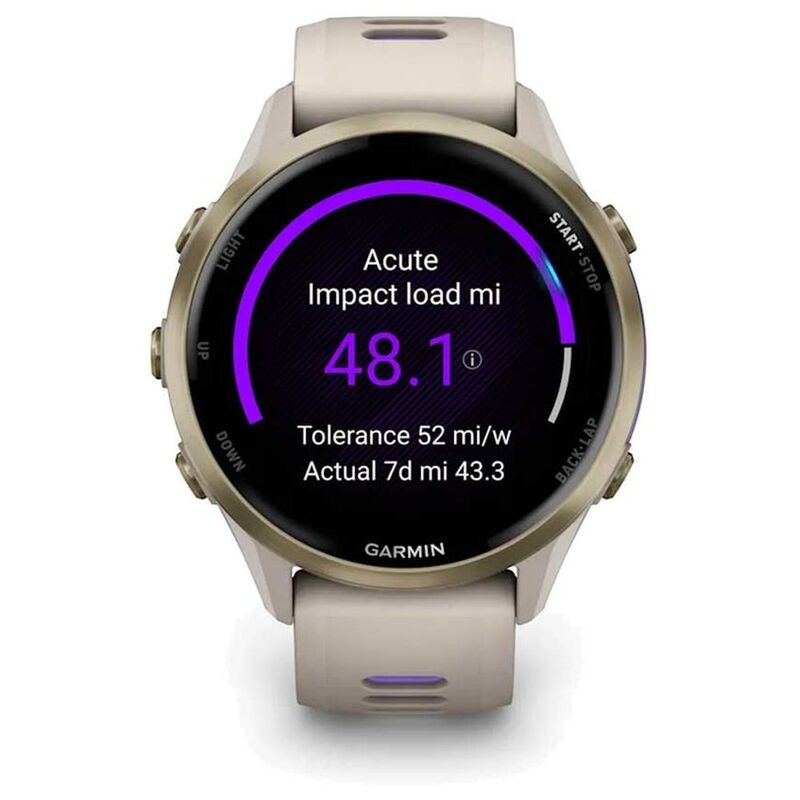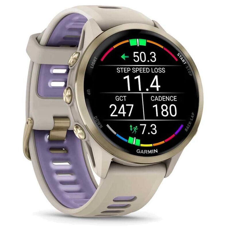 Garmin Forerunner 970 Soft Gold Titanium Smartwatch with French Gray Case & French Gray/ Translucent Indigo Band