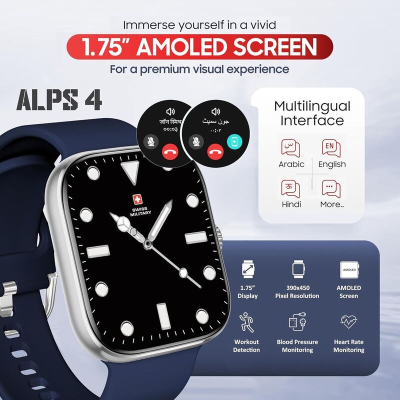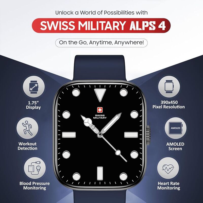 Stay connected, healthy, and active with the Swiss Military ALPS4 smartwatch designed for convenience and comfort. Whether you're making calls, tracking workouts, or navigating in your preferred language, it delivers a seamless experience in a stylish, durable design.