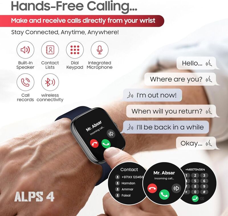 - Hands-Free Calling: Make and receive calls directly from your wrist using the built-in speaker and microphone.