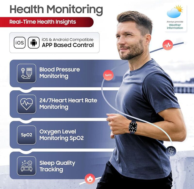 - Smart Health & Fitness Tracking: Auto-detect workouts and monitor heart rate, blood pressure, and SpO2 in real time.