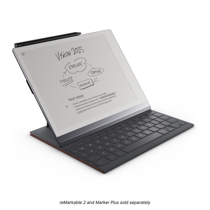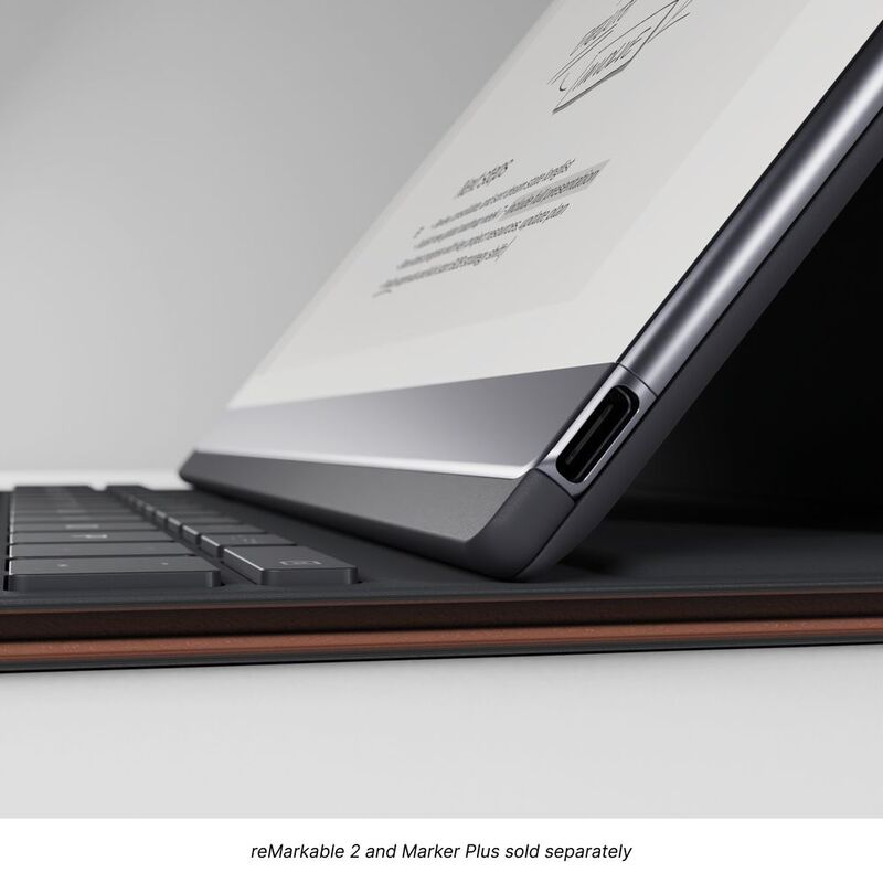 Experience comfortable, focused typing on reMarkable 2 with Type Folio. Now you can seamlessly combine or switch between handwriting and typing. The way you work is up to you. Get the convenience of a slim, tactile keyboard with the protection of a stylish cover that connects to your paper tablet magnetically. No pairing, charging, or cables, just distraction-free writing.