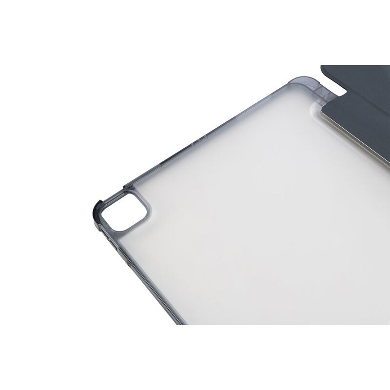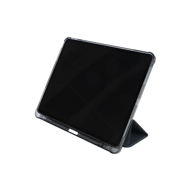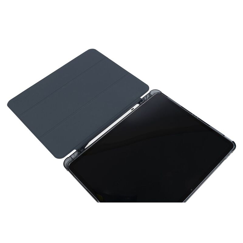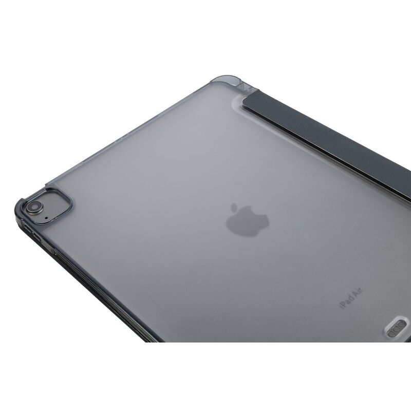 Ultra-protective cover for iPad Air 13" M2 (2024), part of which is made of recycled plastic. The front cover features a satin-effect material and converts into a convenient stand. The anti-shock rear shell is made from transparent double-injected polycarbonate bordered with TPU for easier iPad insertion. The Satin cover has an internal compartment to store your Apple Pencil and an external holder for charging it. Military standard test approved.