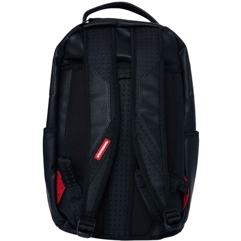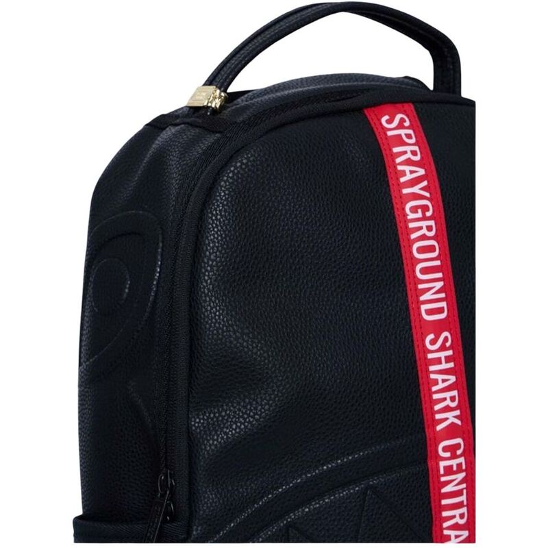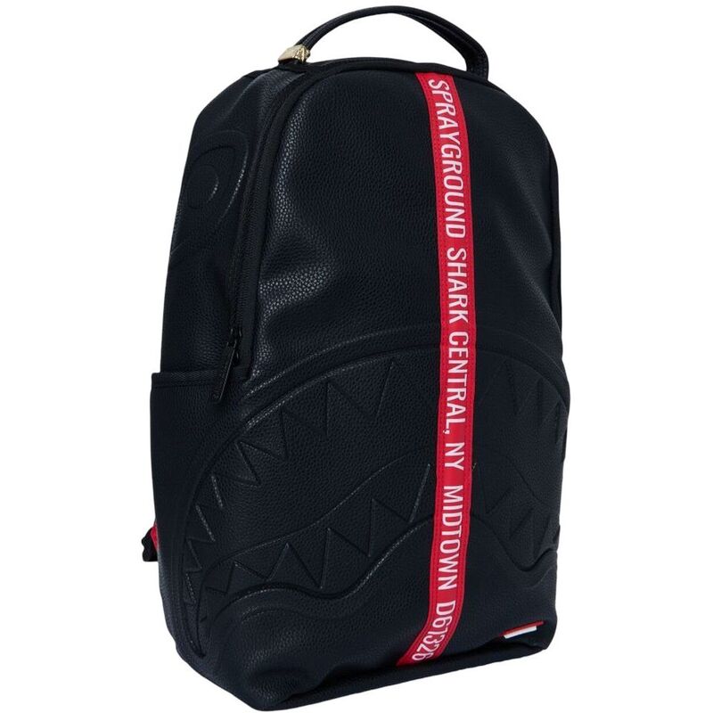 Dominate the streets with the Spray ground Shark Central Solid Black with White Line Sharkmouth Backpack. This bold black backpack features the iconic shark mouth design with white outlines and a striking red vertical stripe.