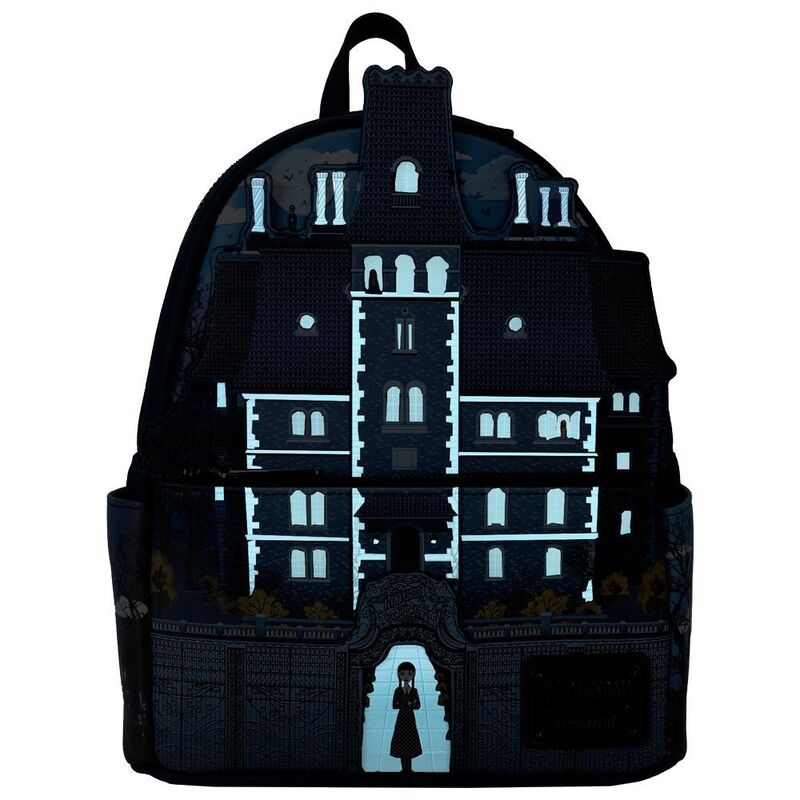 Back to school already… how perfectly dreadful. Join Wednesday Addams as she returns to Nevermore Academy for another macabre mystery. Dare to turn down the lights, and you’ll reveal the bag’s ghostly glow-in-the-dark details! This accessory makes a fashionable addition to any outfit and will keep your belongings safe through any undertaking.