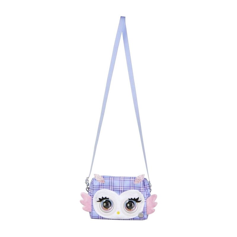 Discover the Purse Pets Print Perfect with its new patterned fabrics: these fabulous, trendy and interactive Purse Pets bags are full of originality! The Purse Pets Owl features lilac tartan print fabric, sparkly ears, fluffy wings, pop art inspired eyes and an adjustable strap.