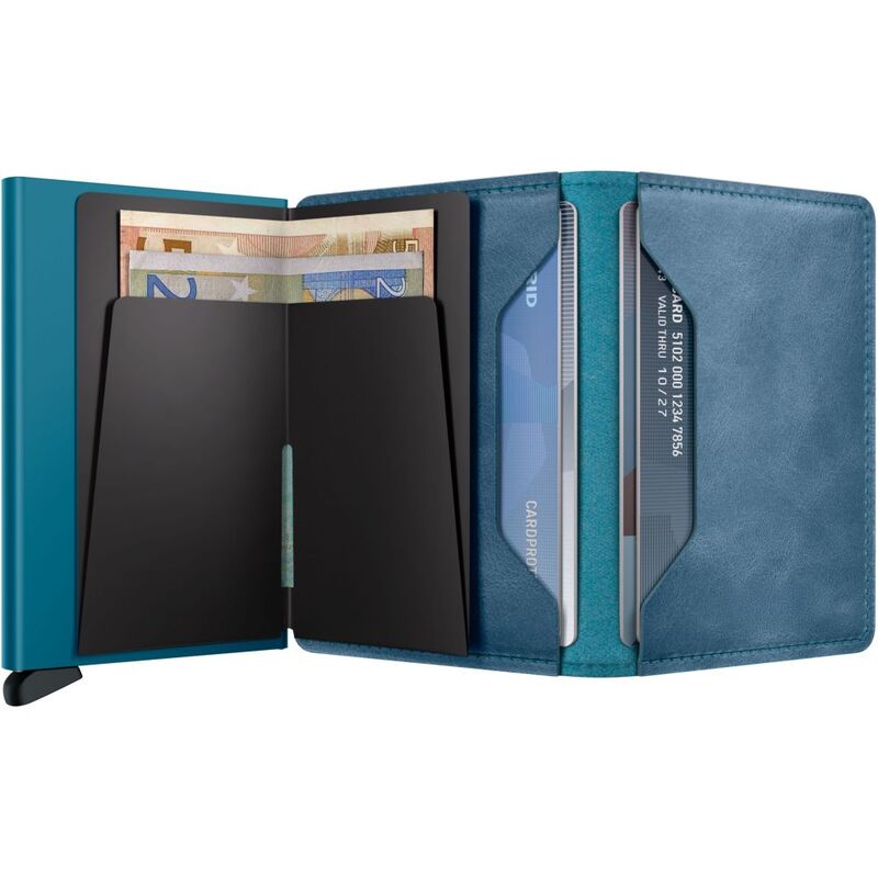 Its slim profile allows the Slimwallet to fit perfectly into any pocket. The open exterior is designed extra wide to accommodate cards, banknotes and receipts. The Cardprotector mechanism enables you to slide out cards with a simple motion, while the aluminum construction protects your cards from bending, breaking and unwanted wireless communication.