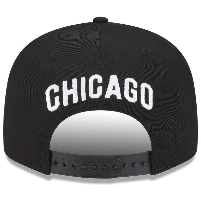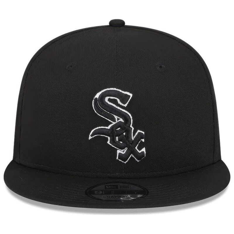 Black flat peak cap from New Era with the Chicago White Sox baseball club motif. Adjustable size. Officially licensed MLB product.
