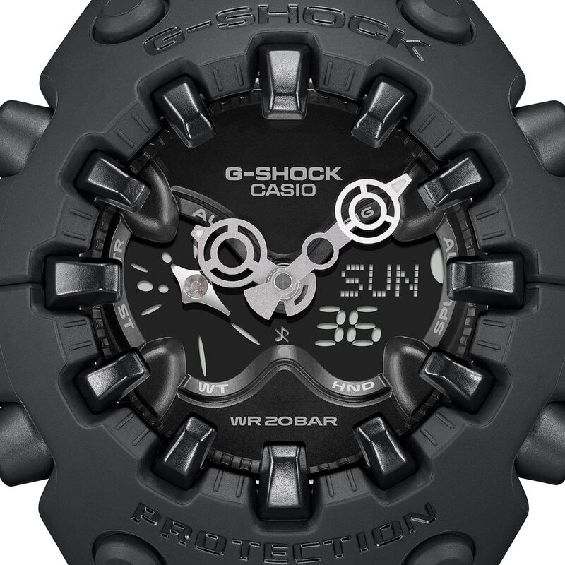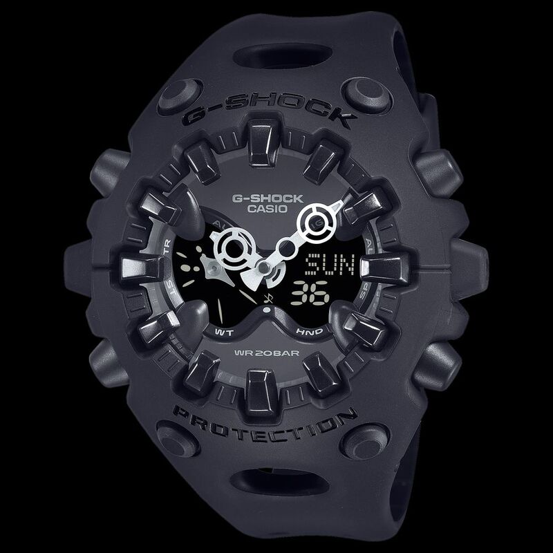 Everyone counts on G-SHOCK for unceasing evolution. But check out this comprehensive reinterpretation, representing the G-SHOCK approach to construction and design that powerfully conveys the brand’s unwavering commitment to toughness. The GA-V01 features an exterior with an organic form bringing together components with sharply defined edges, combined with a large, full-screen LCD topped by a metallic dial with openwork and employing the Shock Release Hand, among other features. With its strikingly innovative and original design concept, the GA-V01 exudes G-SHOCK toughness, restating the brand’s never-ending spirit of challenge and commitment to delivering strength.