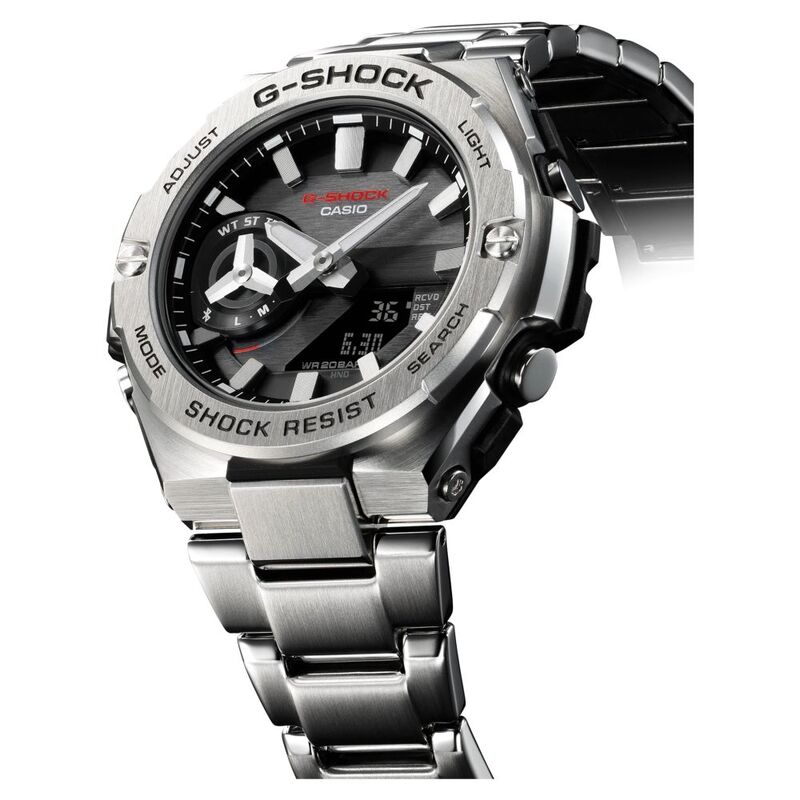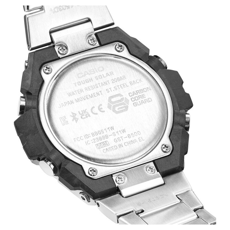 The GST-B500 line brings together smaller components and high-density mounting, continuing to deliver Bluetooth connectivity and solar power charging, but in an even slimmer profile. The Carbon Core Guard absorbs external shocks for true G-STEEL toughness, and the comfortable fit complements your unique way of life. Downsized button guards offer slim yet ample buttons that are easy to operate.