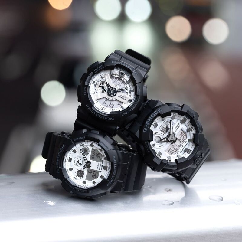 Go bold and confident with a strikingly straightforward G-SHOCK in high-contrast black and white.