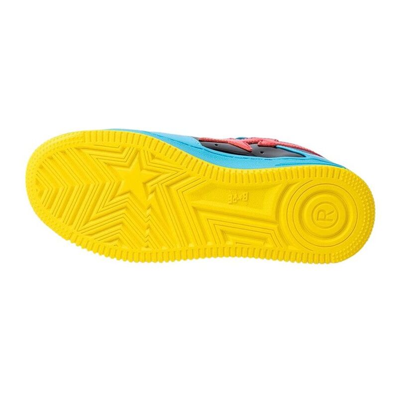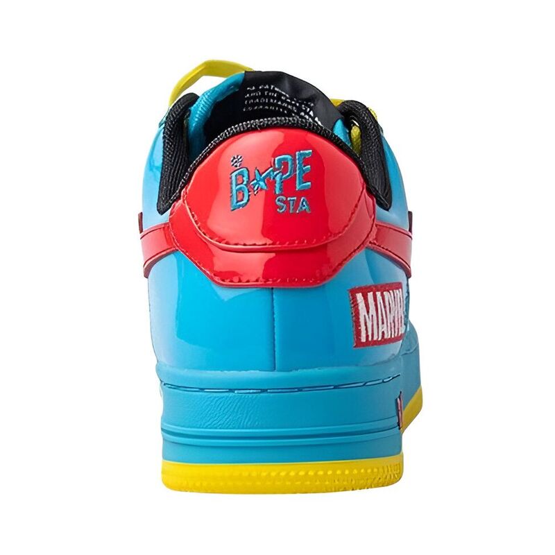 Inspired by the Marvel character Dr. Strange, these sneakers feature an eye-catching design, with blue, black, and red colorways. The upper is made of shiny patent leather in a blue and black red. The striking Dr. Strange graphic and Marvel branding adorn the design, complemented with a red star logo and the embroidered BAPE STA branding.
