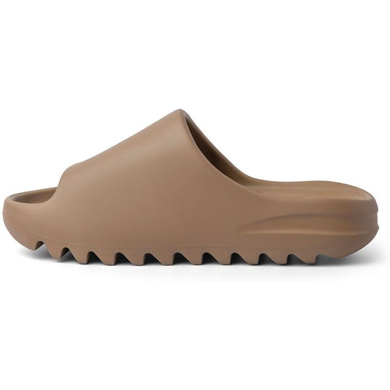 These slides feature a monochromatic light brown hue with an open-toe design and cushy EVA foam construction. Adidas’ three-stripe logo on the footbed and a Yeezy wordmark on the upper lining provide subtle branding, while the outsole’s deep horizontal grooves ensure superior cushioning and enhanced traction.