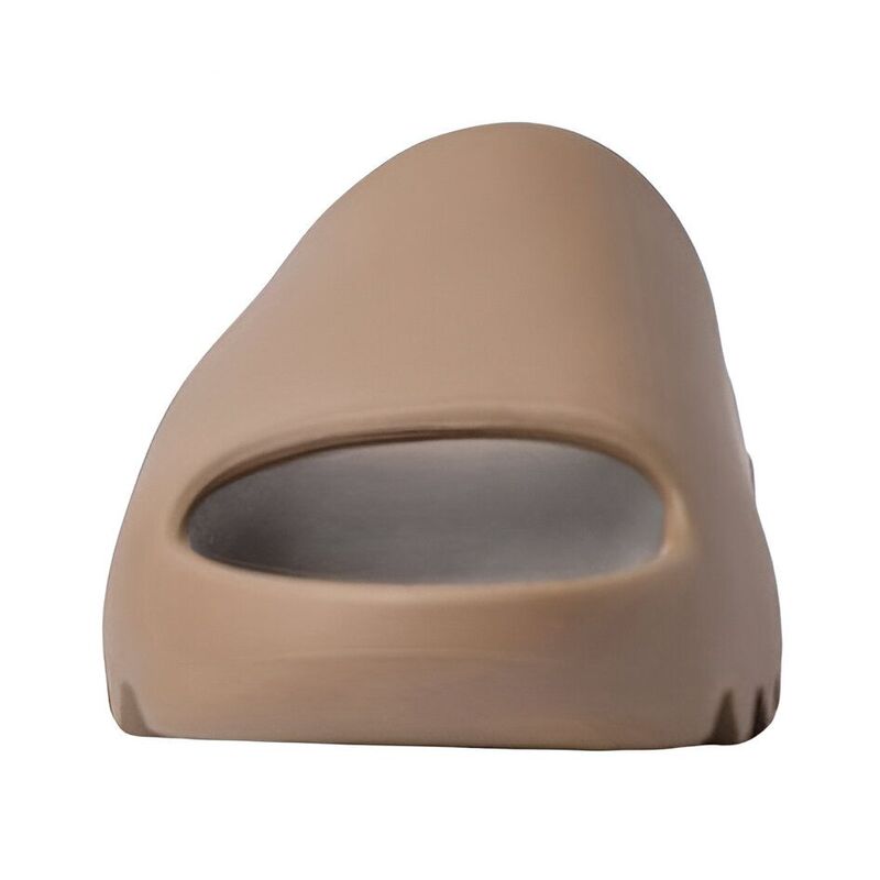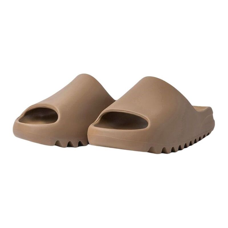 These slides feature a monochromatic light brown hue with an open-toe design and cushy EVA foam construction. Adidas’ three-stripe logo on the footbed and a Yeezy wordmark on the upper lining provide subtle branding, while the outsole’s deep horizontal grooves ensure superior cushioning and enhanced traction.