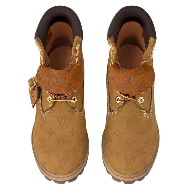 This exquisite boot is crafted from premium waterproof calf leather in elegant brown. It showcases a delicate embossed Monogram pattern and features Louis Vuitton-engraved eyelets, along with the signature of Louis Vuitton Paris x Timberland. The Timberland logo adorns both the side and the tread, adding a touch of distinction to this stylish boot.