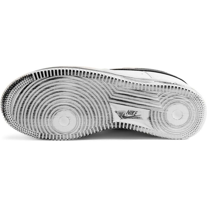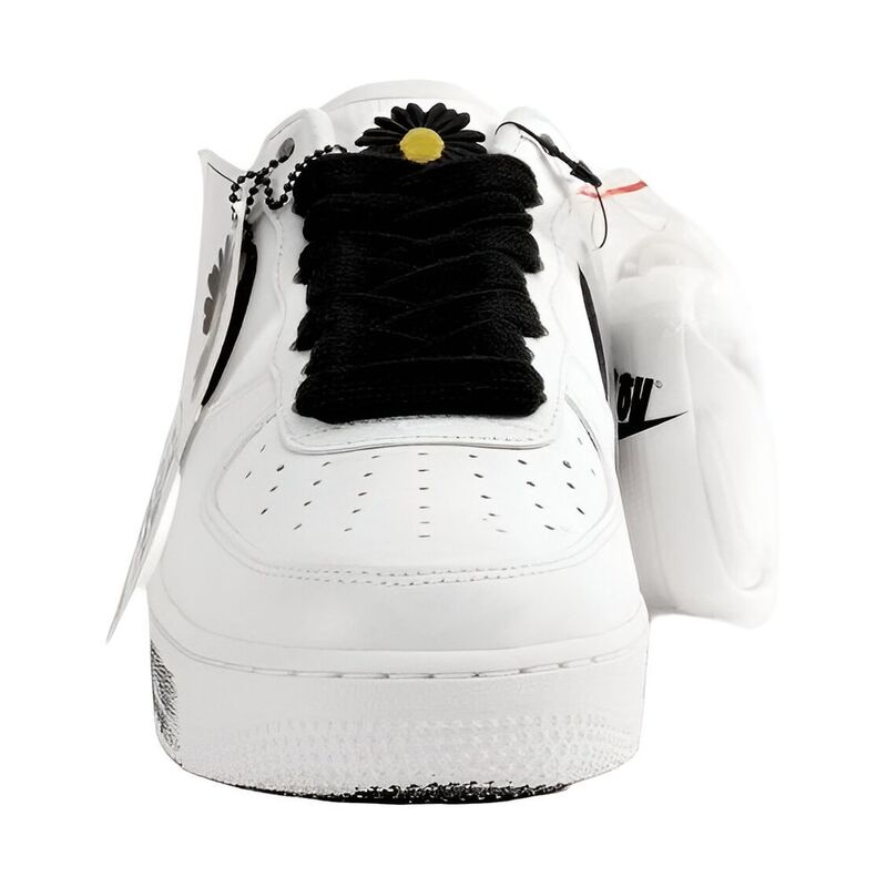 Inspired by the collaboration with Korean hip hop star G-Dragon, these sneakers feature a black Swoosh on a white leather upper designed to wear away, revealing custom artwork. The decorative eyelet pins, embroidered daisy, and brushstroke effects complement the unique design.