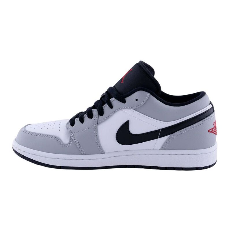 With a white leather upper and grey accents at the heel and toe, complemented by black laces, liners, and Swooshes, this design uniquely stands out. Hits of red, black, and white add a touch of sophistication to the details, while a white midsole and black outsole round out this timeless retro look.
