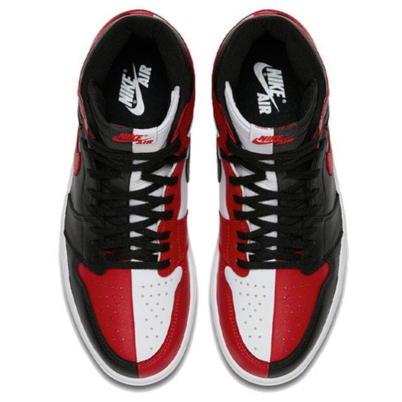 These unique sneakers combine "Banned" and "Chicago Bulls" sneakers in an exquisite design of premium leather, splitting the sneakers in half with a stunning artistic touch. Red, black and white form a mesmerizing contrasting palette, while the iconic Swooshes adorn the sides to complement the elegant design.