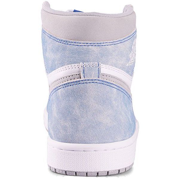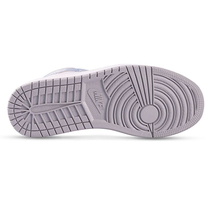 With an elegant weathered look, this high-top features a crisp white leather upper with softly faded blue suede overlays. Subtle neutral grey accents enhance the design, adorned with iconic Wings and Nike logos. Atop the traditional AJ1 rubber cupsole, with encapsulated Nike Air cushioning in the heel, these sneakers ensure timeless comfort and style.