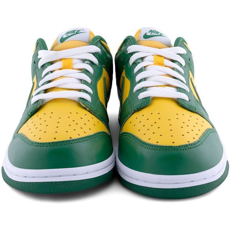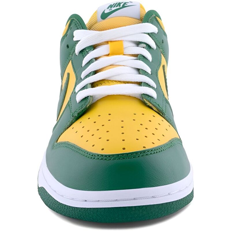These sneakers capture the essence of the iconic 2001 original with its luxurious two-tone palette of yellow leather and contrasting green overlays. Nike branding on the heel tab and a stitched-on woven tag atop the lightly padded nylon tongue add sophisticated detailing. The silhouette sits atop a sturdy white foam midsole and green rubber outsole, ensuring both style and durability.