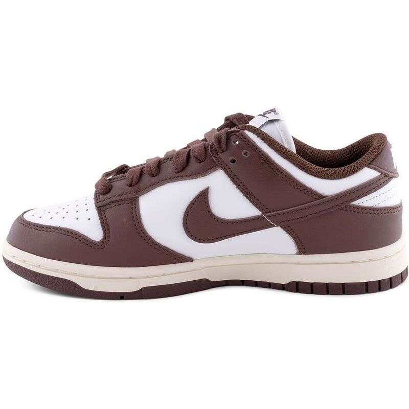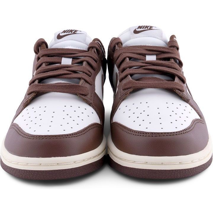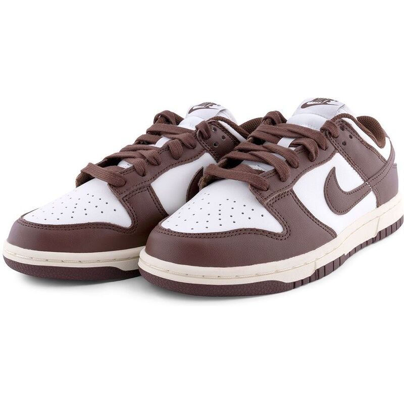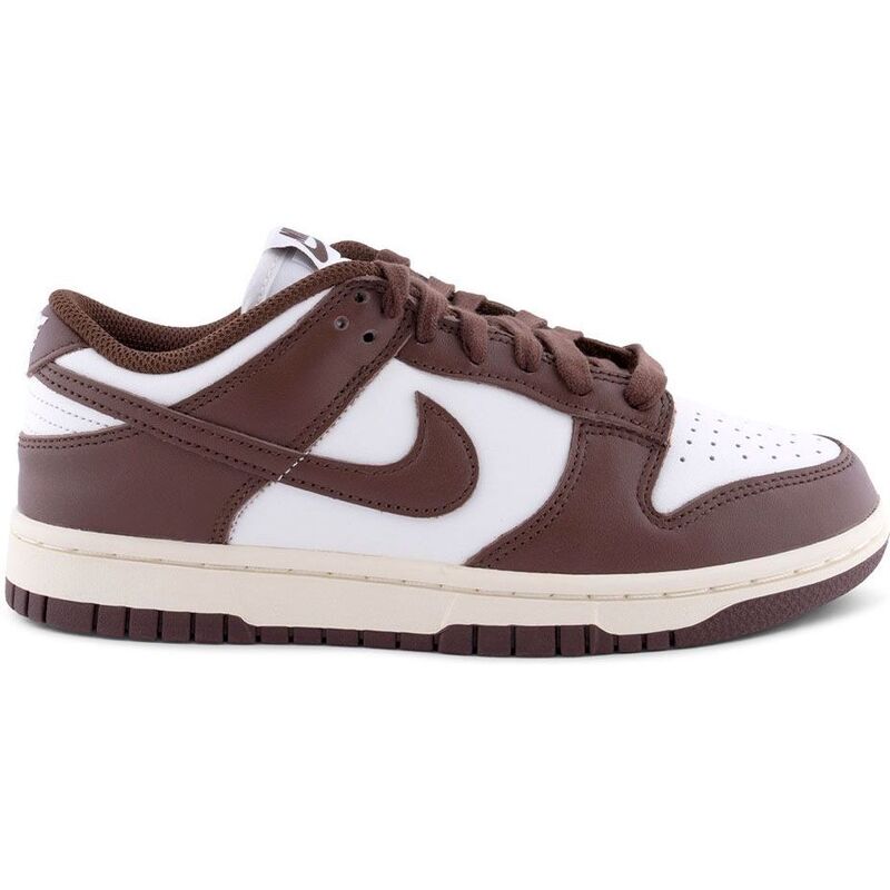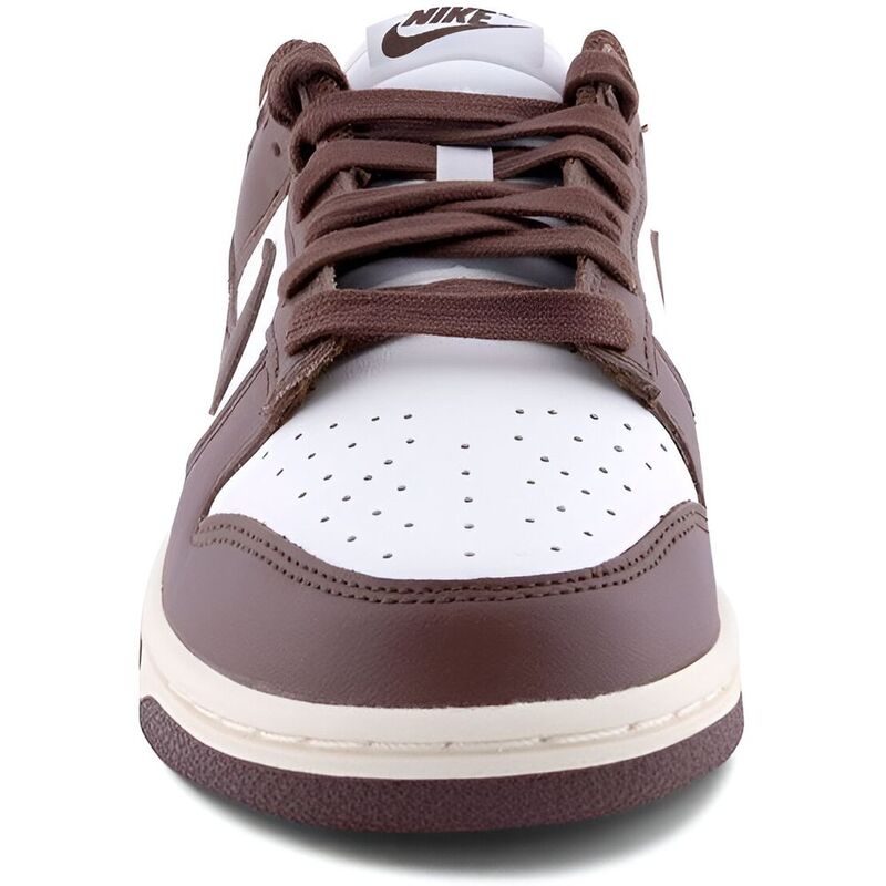These sneakers blend smooth leather with a white base and rich chocolate brown overlays, accented by a matching Swoosh. Classic Nike branding adorns the tongue tag, back tab, and sockliner. A vintage off-white midsole with interior foam wedge is supported by a durable brown rubber outsole, ensuring unique style and longevity.