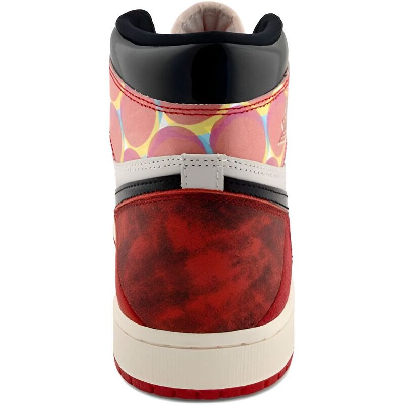 These sneakers reimagine the ‘Chicago’ colorway with a nod to 'Spider-Man: Across the Spider-Verse.’ They feature a white leather upper, black patent leather collar and Swoosh, and scarlet overlays with various textures. With Wings and Nike logos gracing the design, this high-top sits on a rubber cupsole with vintage sidewalls and a crimson semi-translucent outsole.