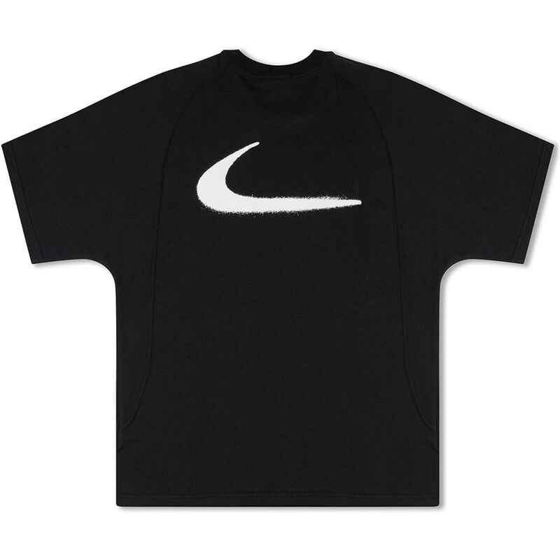This t-shirt is part of an exclusive eight-piece collection, symbolizing the prestigious collaboration between two distinguished luxury brands. It’s adorned with artistic white spray dots to embody the spirit of luxury streetwear on a black backdrop, complemented by the iconic Nike Swoosh placed on the back and left chest with great precision.
