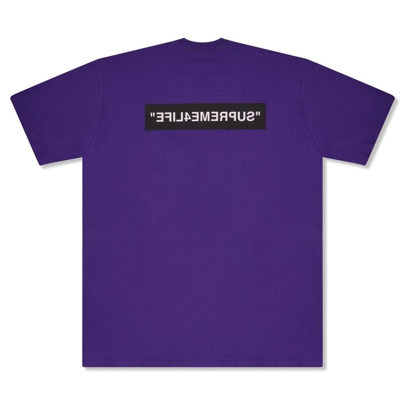 The Supreme 4 Life Tee in purple features a crown graphic on the chest topped with the Supreme logo and the phrase "New York" in white. On the back, the reversed "SUPREME4LIFE" lettering adds a unique touch, reflecting the bold and rebellious essence of streetwear.
