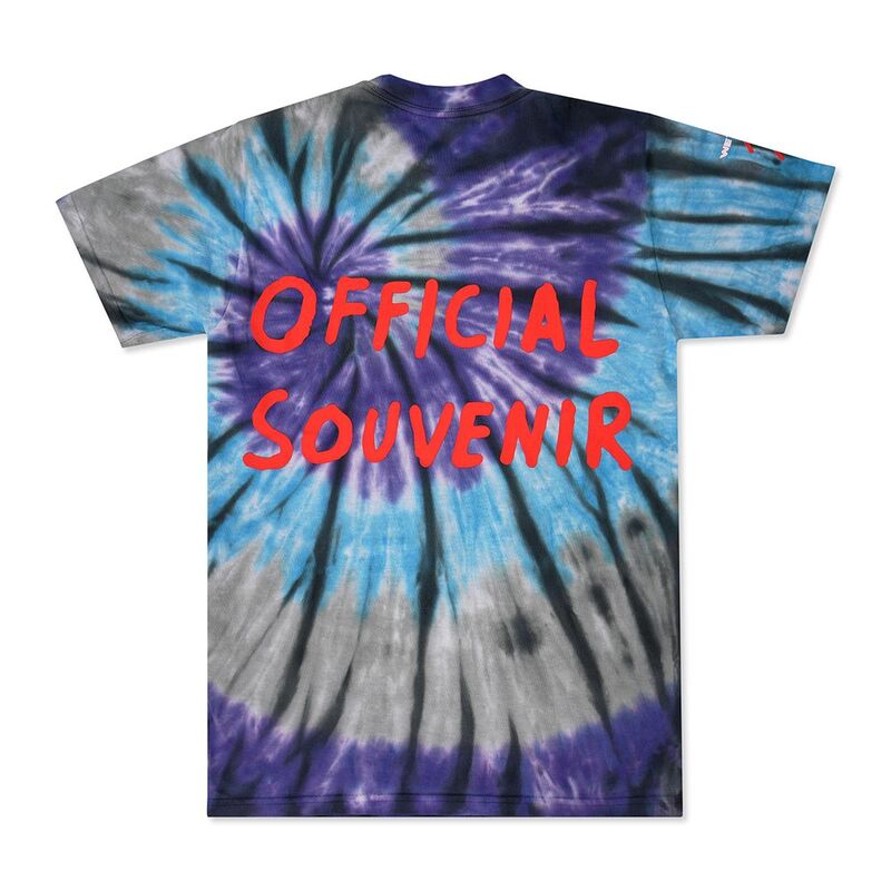 This Travis Scott Official Souvenir Tee Tie Dye celebrates the Astroworld Festival 2019, featuring the official Astroworld Festival branding on the front, and the words "Official Souvenir" on the back. The unique tie dye patterns lends it a dynamic visual appeal, embodying Travis Scott's iconic style and cultural influence.