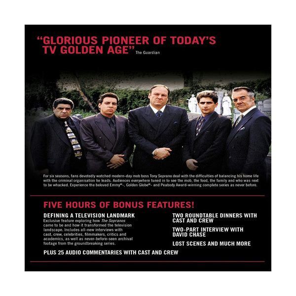 The Sopranos: The Complete Series Blu-ray set is loaded with more than five hours of bonus material including a new and exclusive feature exploring how The Sopranos came to be and how it transformed the television landscape.