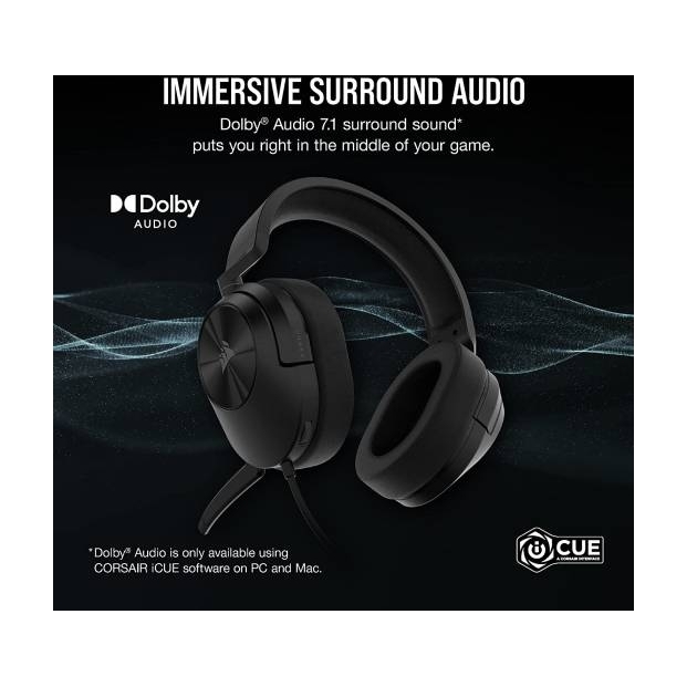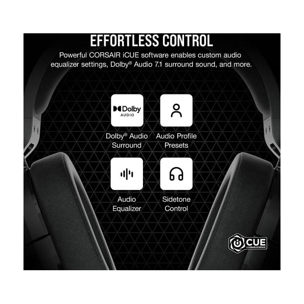 - EFFORTLESS CONTROL: Powerful CORSAIR iCUE software enables custom audio equalizer settings, Dolby Audio 7.1 surround sound, and more.